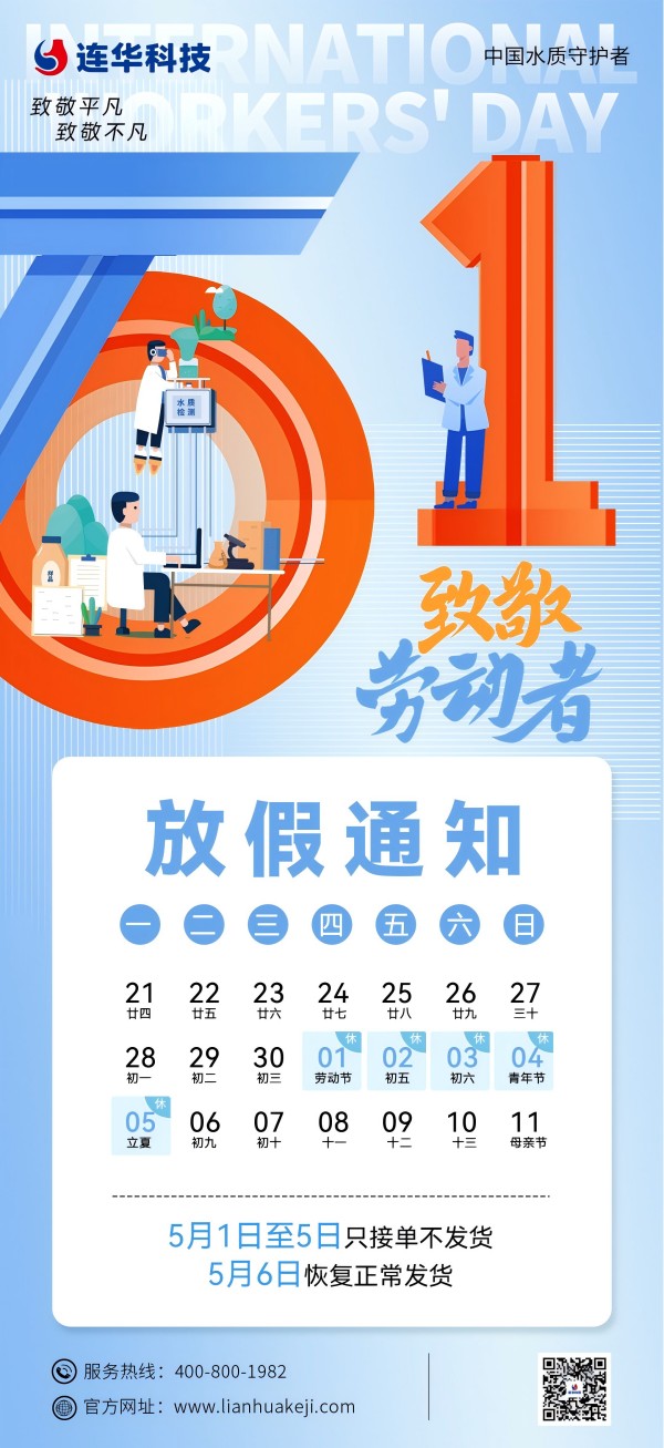 您好!在這繁花似錦、綠草如茵的美好時節,我們即將迎來一年一度的國際勞動節。在此,連華科技全體員工向您致以最誠摯的節日問候,衷心祝愿您和您的家人勞動節快樂,假期愉快!