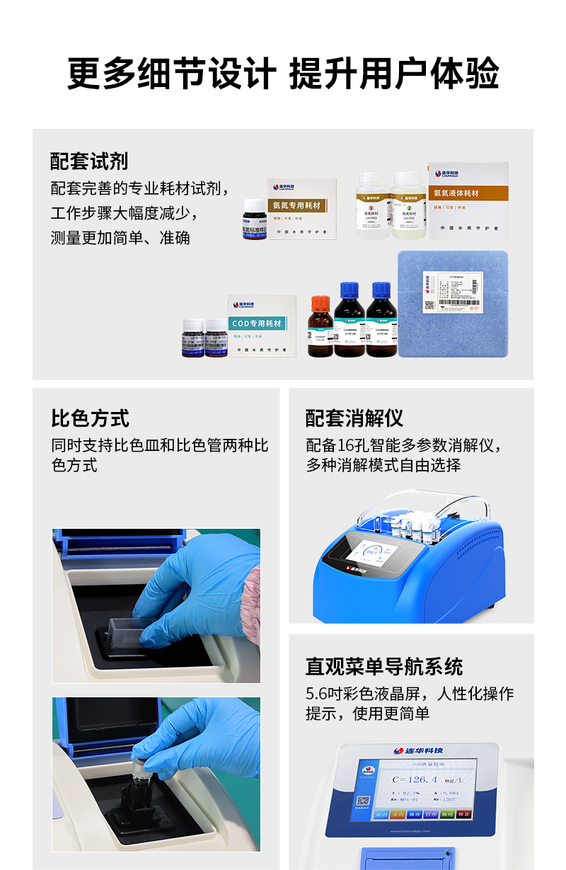 簡(jiǎn)要描述: 儀器符合《HJ924-2017 COD光度法快速測(cè)定儀技術(shù)要求及檢測(cè)方法》、《HJ-T 399-2007 水質(zhì) 化學(xué)需氧量的測(cè)定 快速消解分光光度法》、《HJ_535-2009 水質(zhì) 氨氮的測(cè)定 納氏試劑分光光度法》《HJ 536-2009 水質(zhì) 氨氮的測(cè)定 水楊酸分光光度法》國(guó)家政策標(biāo)準(zhǔn),支持COD、氨氮指標(biāo)的快速檢測(cè),標(biāo)配16孔多參數(shù)消解儀,性價(jià)比超高。