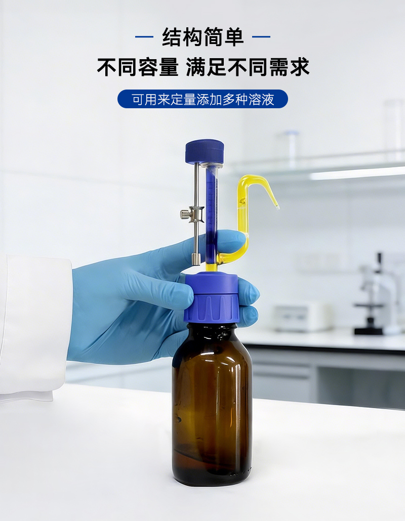 簡要描述: 結構簡單,容量選擇豐富,可用來定量添加多種溶液。