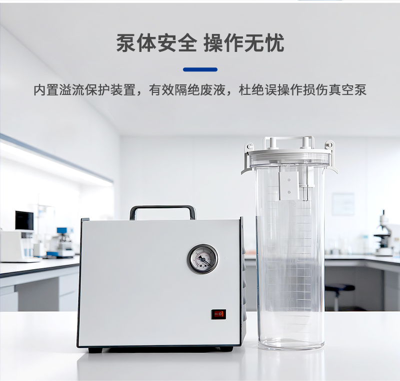 7、過濾系統(tǒng)帶溢流保護(hù)裝置,可防止誤操作導(dǎo)致廢液流入真空泵;