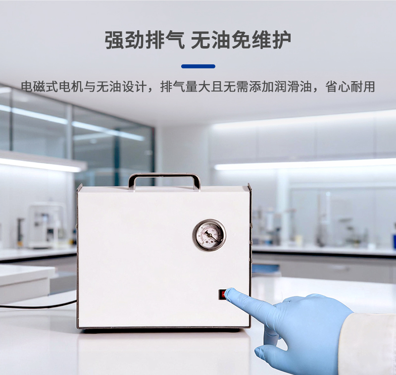 8、真空泵采用電磁式電機(jī),活塞直線往復(fù)運動產(chǎn)生壓縮氣體,排氣量大;